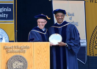On May 16, 2021, the West Virginia University College of Law awarded me the Justicia Officium Award during graduation ceremonies for the 2020 and 2021 graduates at Mylan Puskar Stadium. The Justitia Officium is the highest honor bestowed by the law faculty in recognition of outstanding contributions and service to the legal profession. I couldn't have been more surprised or humbled by the honor. The weekend was made complete by the fact that my daughter, Lauren, a 2020 WVU graduate with degrees in chemistry and anthropology, marched in her graduation exercises during the same weekend. https://www.law.wvu.edu/news/2021/05/17/hicks-awarded-wvu-college-of-law-justitia-officium
